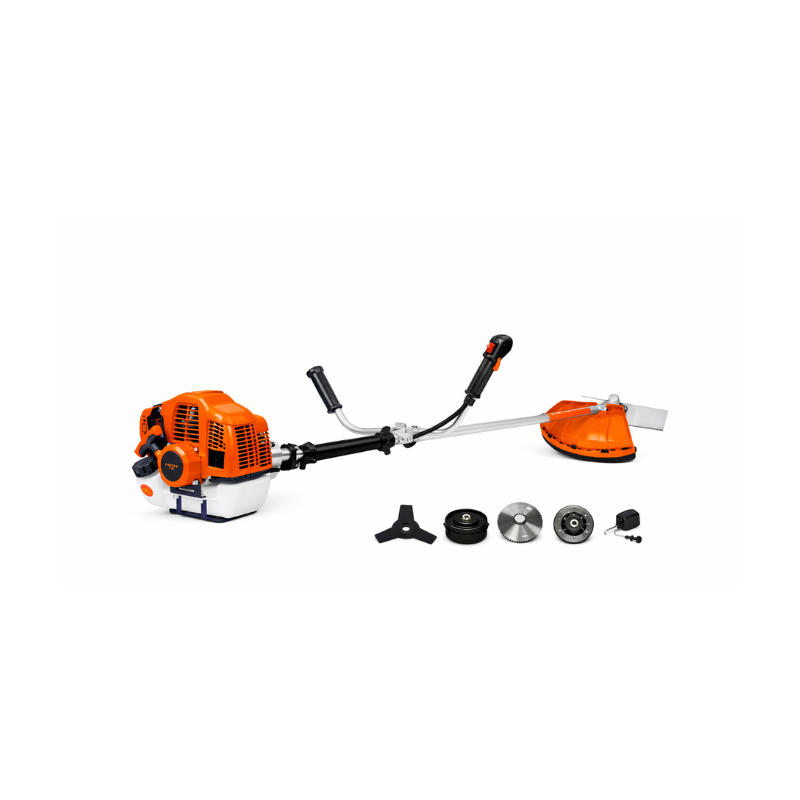 Side pack design ki wajah se machine ko handle karna easy hota hai aur user comfortable tareeke se long time tak kaam kar sakta hai. Yeh brush cutter grass, weeds aur small bushes ko easily cut kar sakta hai.