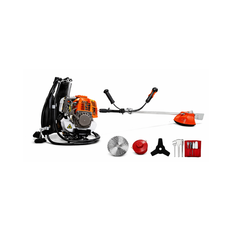Backpack design ki wajah se machine ka weight shoulders par evenly distribute ho jata hai, jisse long time tak kaam karna easy aur comfortable hota hai. Yeh brush cutter thick grass aur dense weeds ko efficiently cut kar sakta hai.